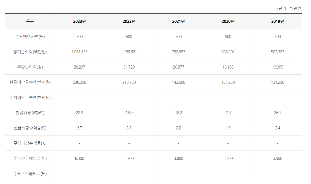 현대글로비스는 주주가치 제고를 위해 지속적으로 배당을 실시하고 있습니다.