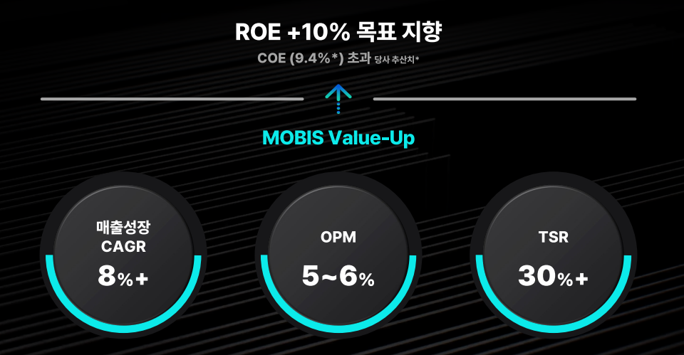 현대모비스는 향후 현대차 그룹 외 글로벌 수주 물량을 늘려 수익성을 확보하고, 수익을 주주환원책을 통해 주주들에게 돌려주어 주가를 부양하겠다는 계획입니다.