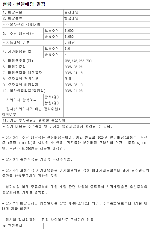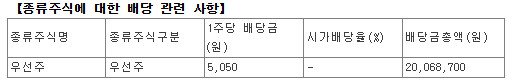 배당금 : 5,000원 (보통주) / 5,050원 (우선주)