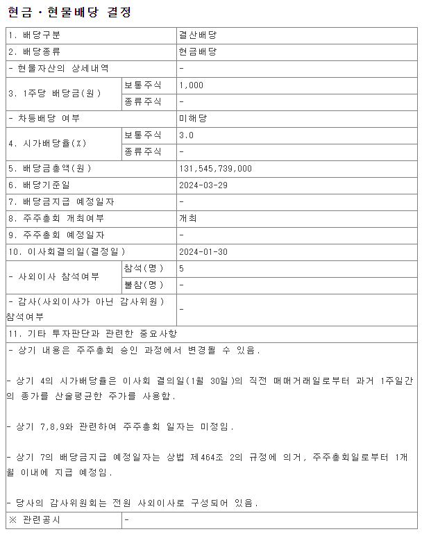 배당금 : 1,000원 (보통주)