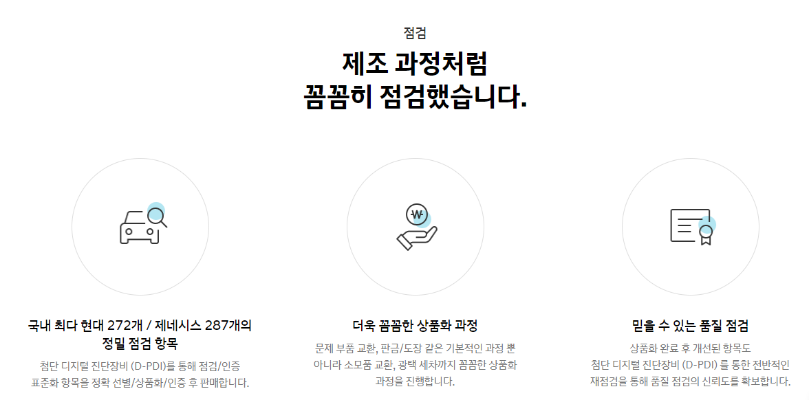 현대 인증중고차 점검 (출처 : 현대 인증중고차 홈페이지)