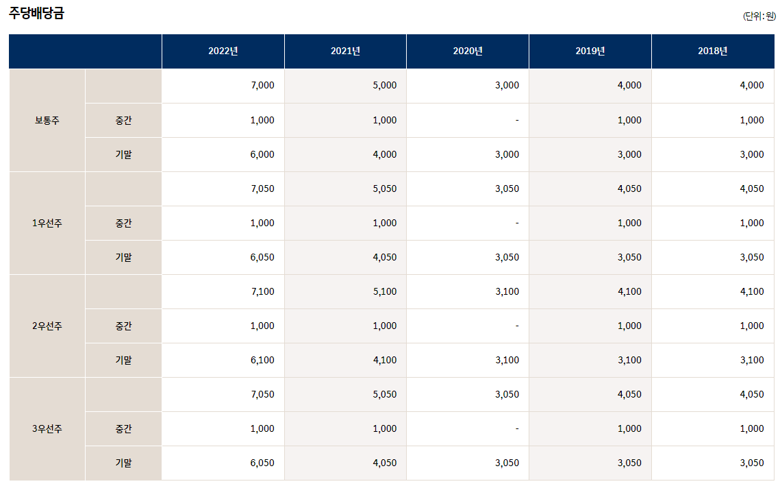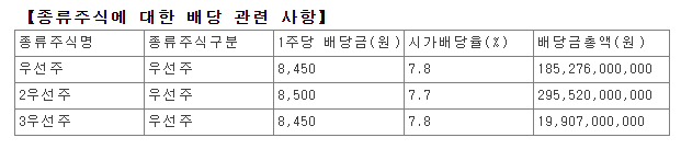배당금 : 8,400원 (보통주) / 8,500원(우선주)