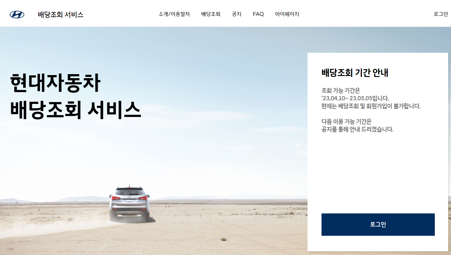 배당조회 바로가기 : https://dividend.hyundai.com/main.do