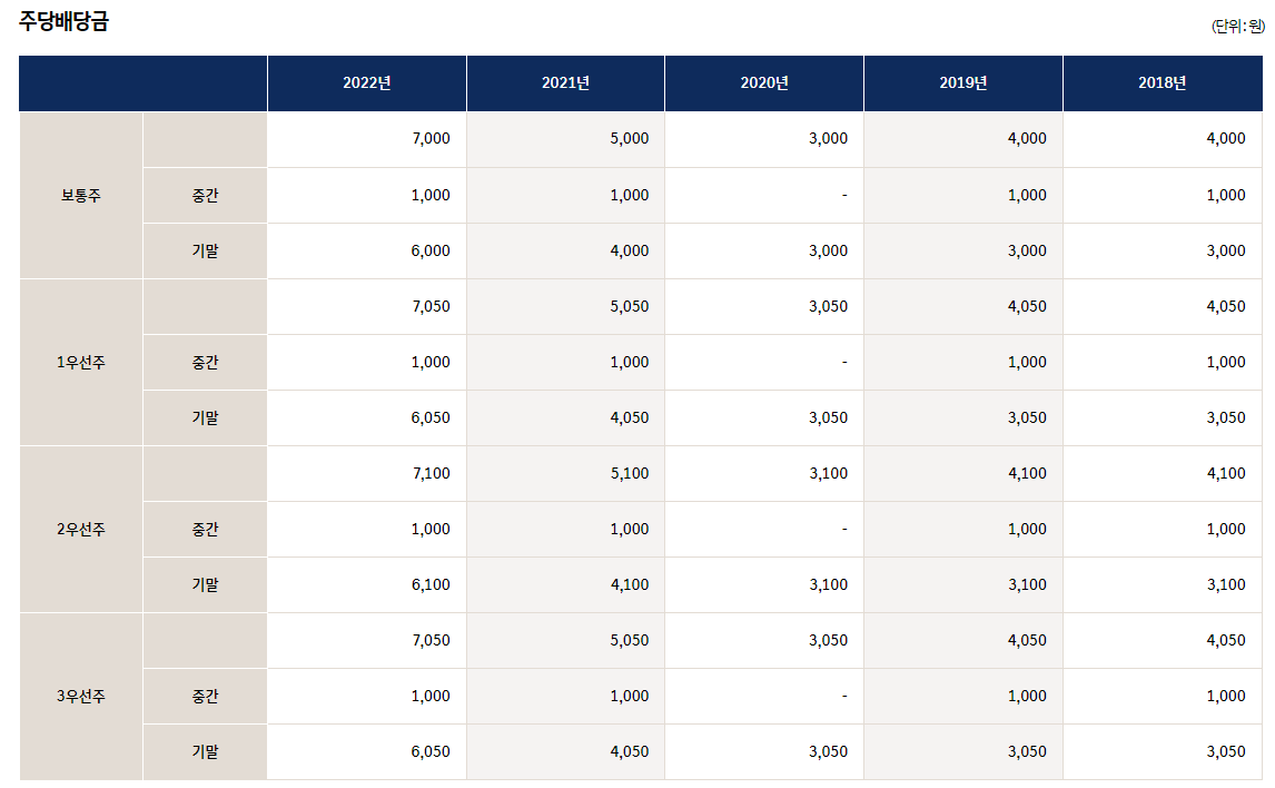 배당금 지급 History ( 출처 : 현대차 공식 홈페이지)