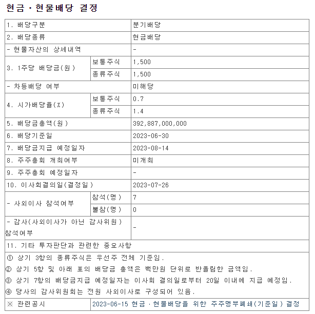 ▶ 포스코홀딩스 2023년 2분기 배당금 지급