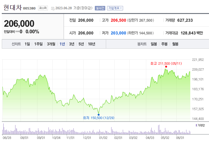 이는 최근 현대차는 호실적에 기반한 것이며, 이번 2분기에는 영업이익 3조 6080억원으로 상장사 중 1위를 달성할 것으로 예상되고 있습니다. 향후에도 당분간은 현대차의 주가 상승 흐름이 이어질 것으로 예상되는 대목입니다.
