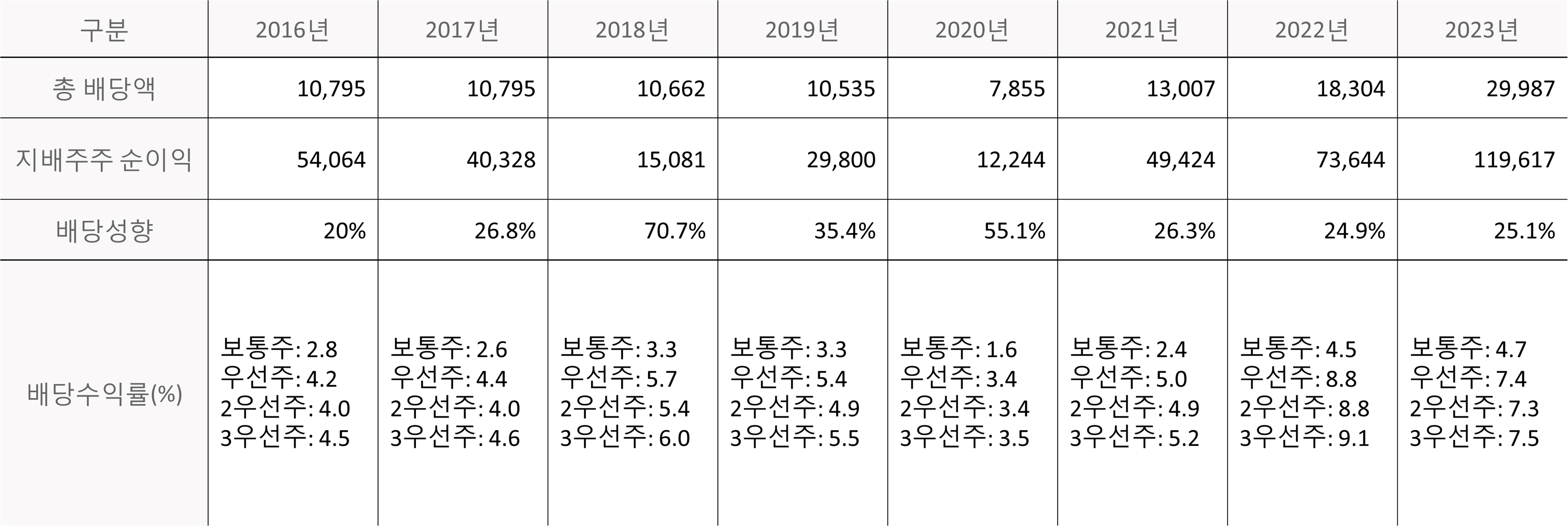 배당일 : 4월 (미정, 주주총회일로부터 1개월 이내)