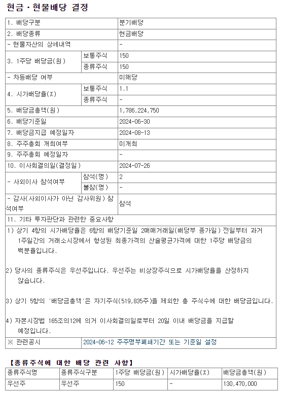 2. 2024년 2분기 효성ITX 배당금 (분기배당)