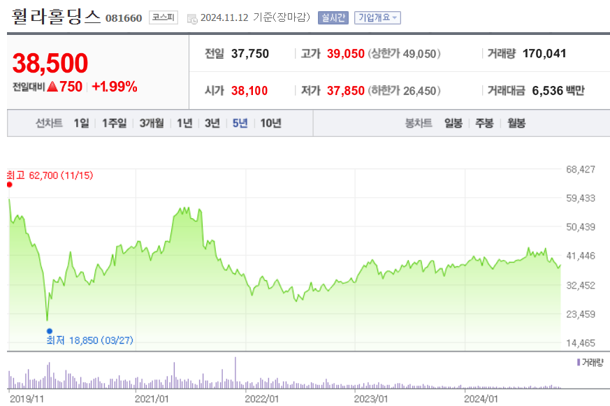 휠라홀딩스 주가 (출처 : 네이버 증권)