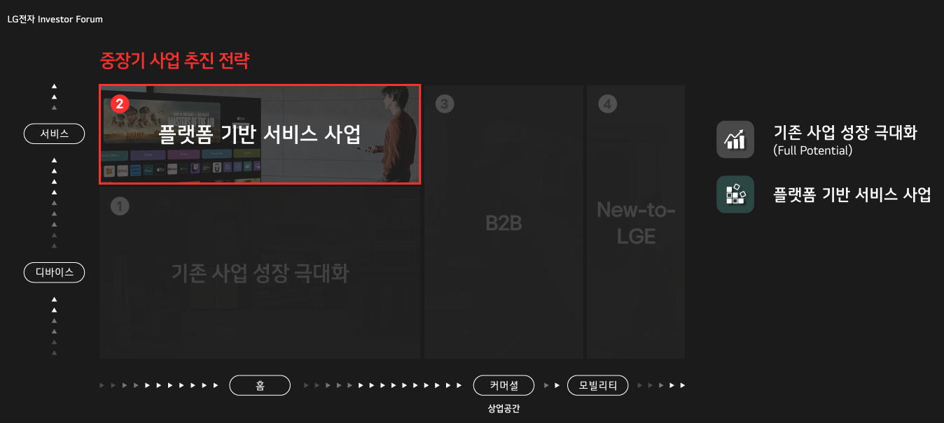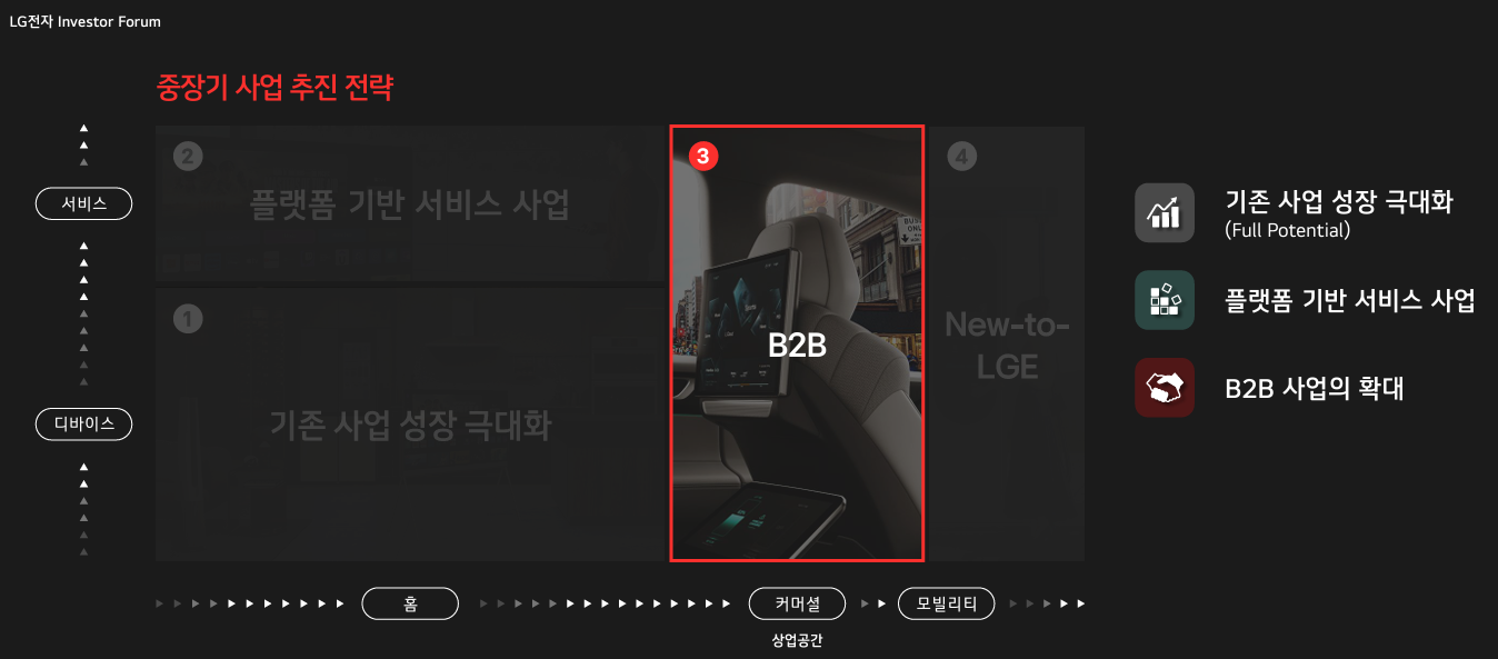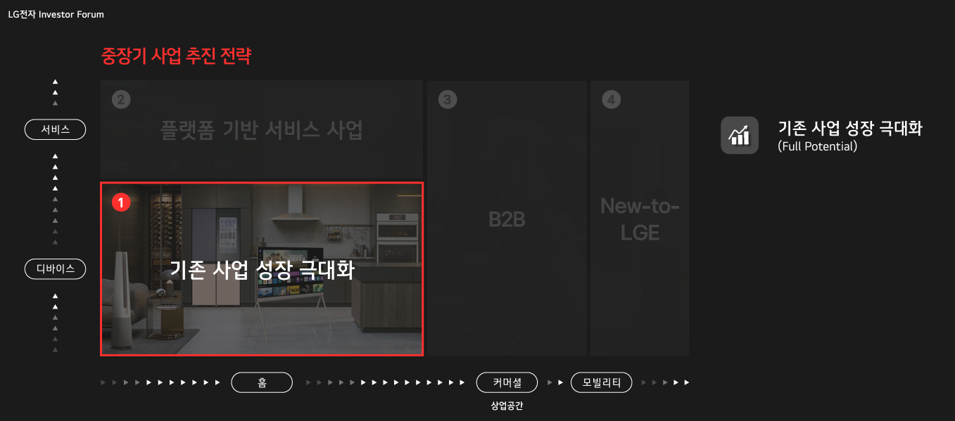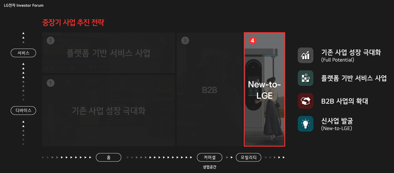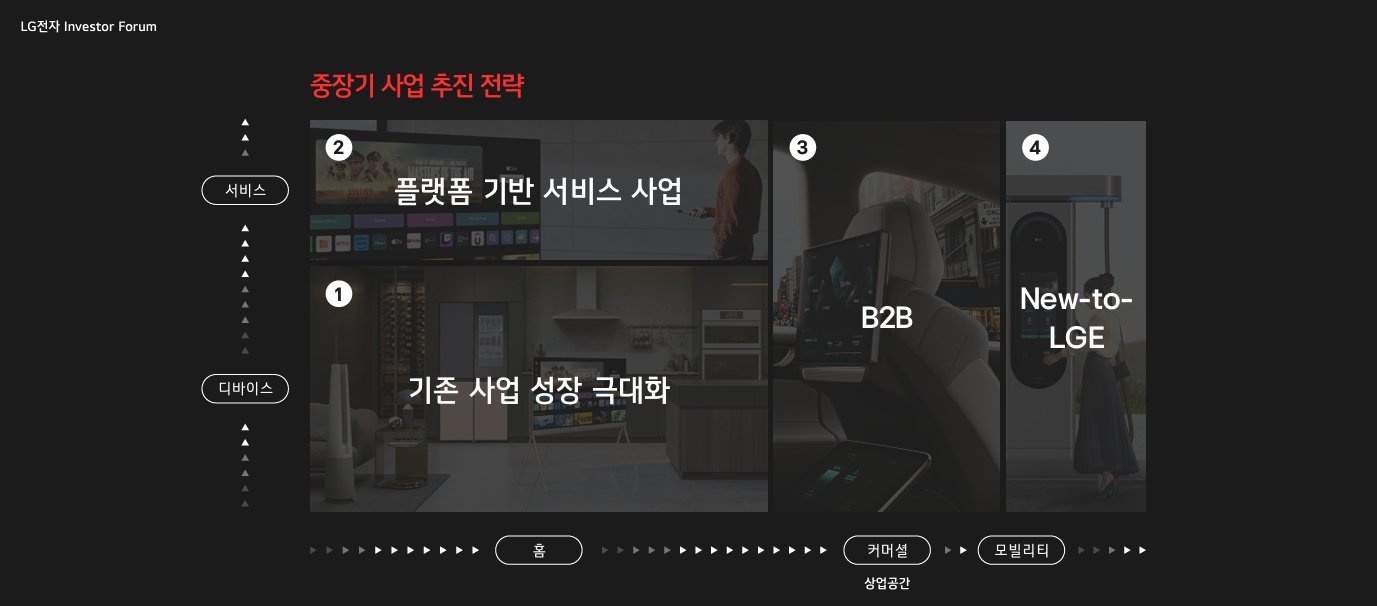 LG전자는 중장기 사업 추진 전략으로, 크게 4개의 카테고리로 분류를 했습니다.