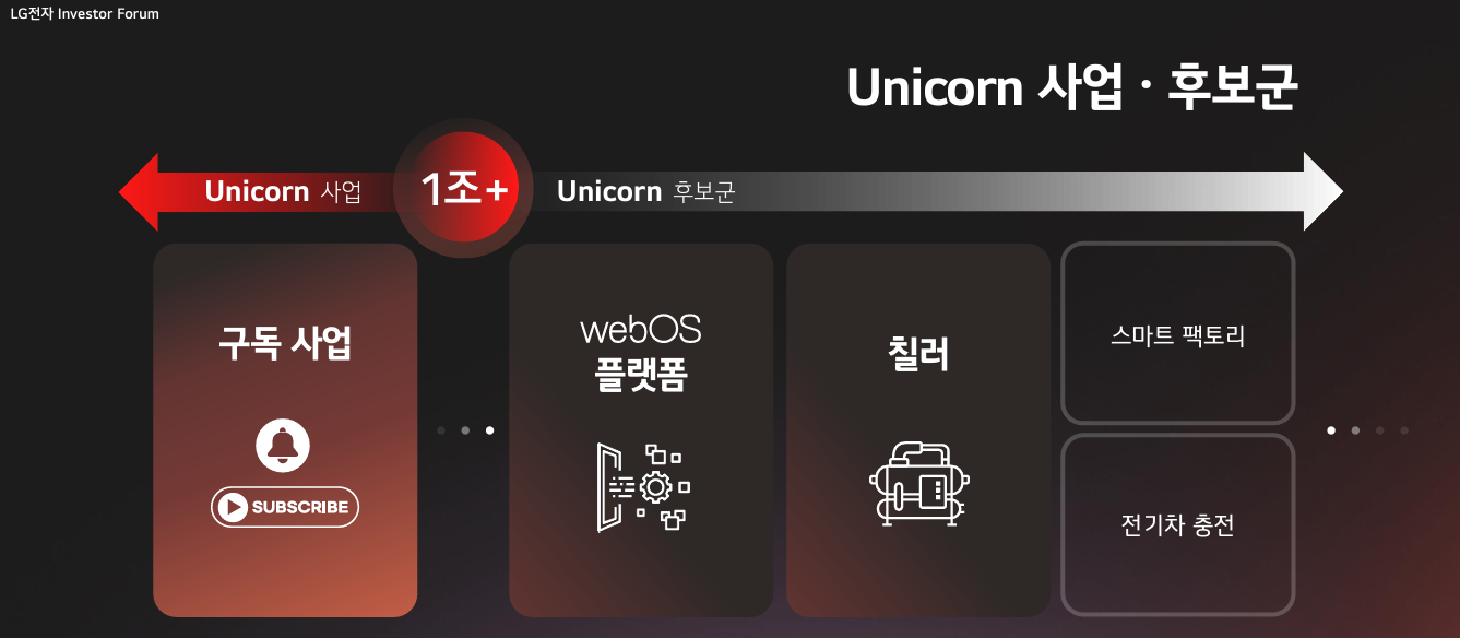 LG전자는 향후 먹거리인 유니콘 사업 및 Seed 사업 후보군에 대해 설명했습니다.