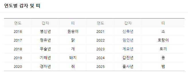 즉, '검은 토끼의 해'입니다. 연도별 갑자 및 띠는 다음 표를 참고해주세요!