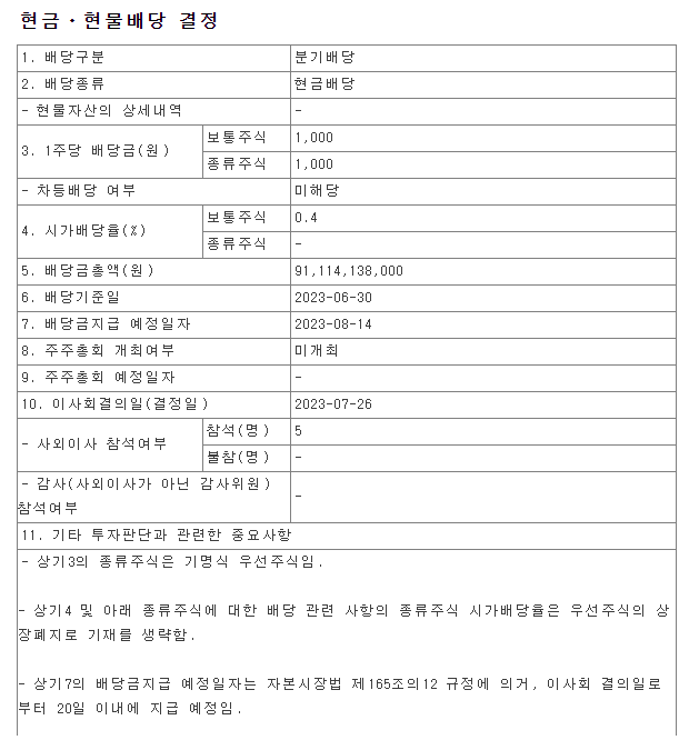 ▶ 현대차 2023년 2분기 배당금 지급