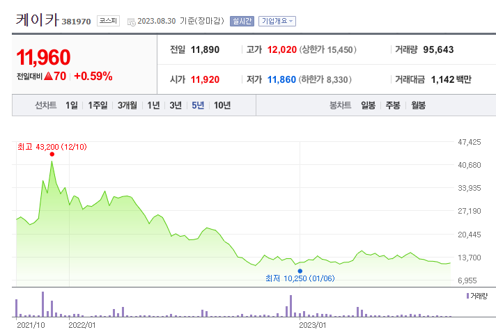 1. 케이카 주가