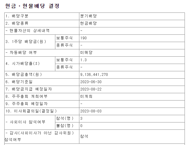 2. 2023년 2분기 케이카 배당금 지급 (분기배당)