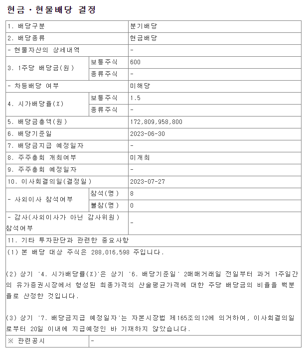 ▶ 포스코홀딩스 2023년 2분기 배당금 지급