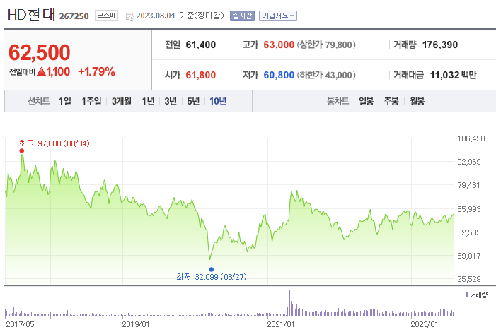 1. HD현대 주가