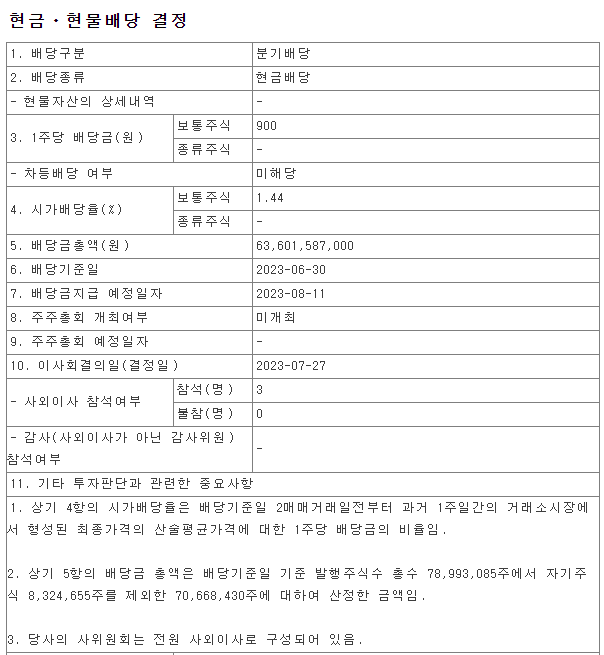 ▶ 포스코홀딩스 2023년 2분기 배당금 지급