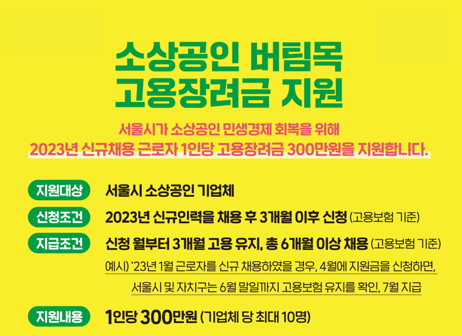바로 서울시 소상공인 버팀목 고용장려금입니다.