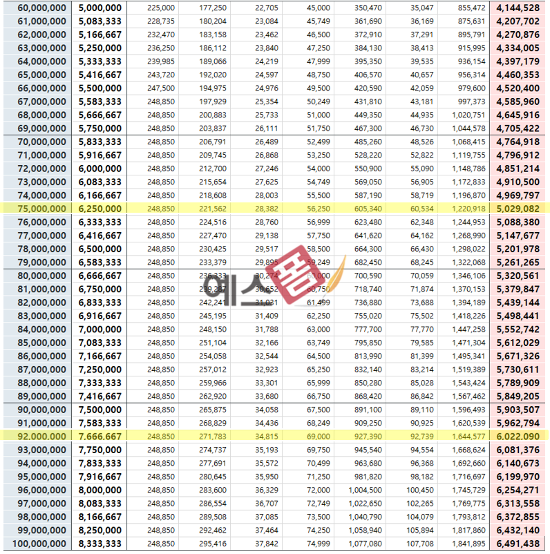 통장에 300, 400, 500, 600만원 이상 찍히려면 어느 정도 연봉이 되어야 하는지 표시해두었습니다.
