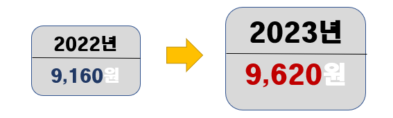 2023년 연봉 실수령액을 알아보기에 앞서, 최저 임금은 아래와 같이 변경되었습니다.