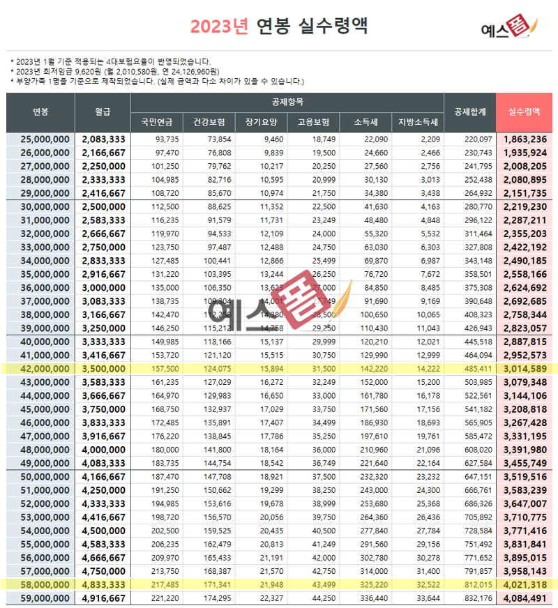 - 6,700만원부터 국민연금 상한액(248,850원) 적용