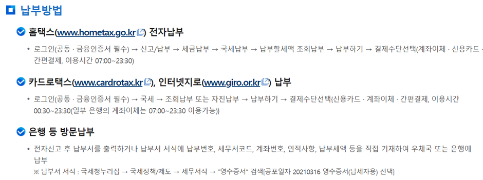 ▷ 종합소득세는 매년 5월 1일~5월 31일 기간에 신고 및 납부해야 하며, 성실신고 대상자료 분류되었다면 6월 30일까지 신고 및 납부하면 됩니다.