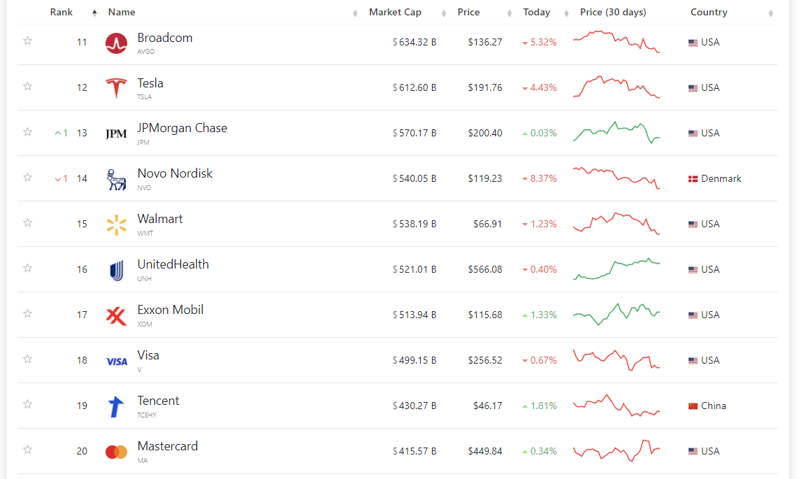 3. 세계 기업 시가총액 순위 11~20위