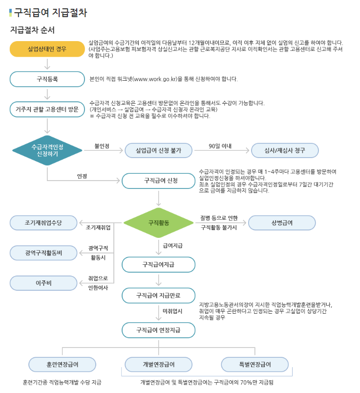 구직급여는 퇴직 다음날로부터 12개월이 경과 하면 소정급여일수가 남아있다고 하더라도 더 이상 지급받을 수 없습니다. 또 실업급여 신청없이 재취업하면 지급받을 수 없으므로 퇴직 즉시 신청해야 합니다
