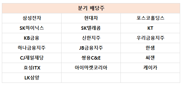 한국도 예전과는 다르게 기업들이 점점 주주환원에 신경을 쓰고 있는 상황으로, 앞으로 분기 배당 기업은 점점 늘어날 것으로 예상됩니다.