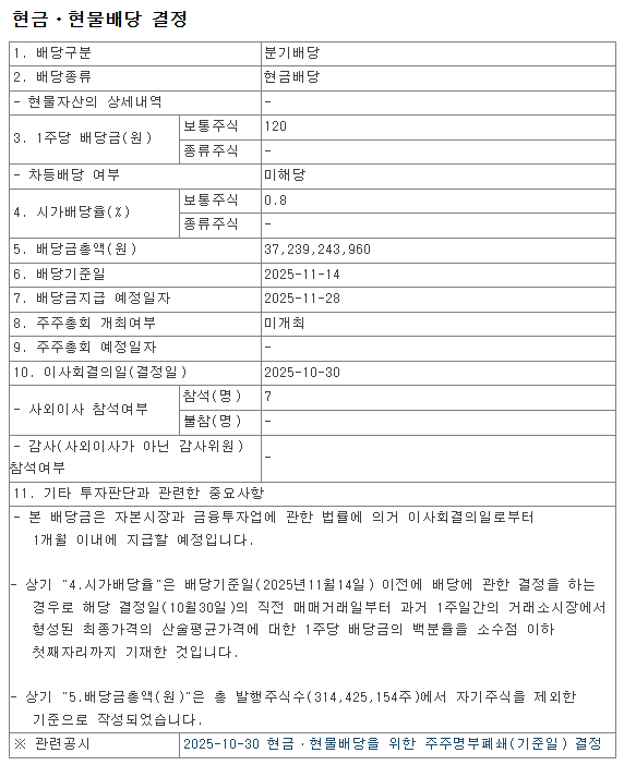 2.  2025년 3분기 분기배당