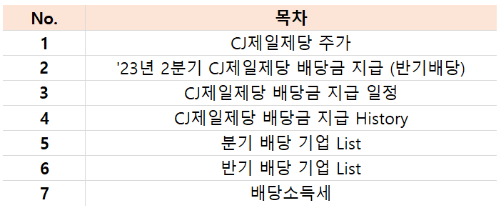 2. 2023년 2분기 CJ제일제당 배당금 지급 (분기배당)