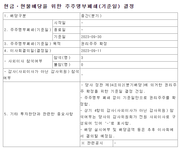 ▶ SK하이닉스 2023년 3분기 배당금 지급
