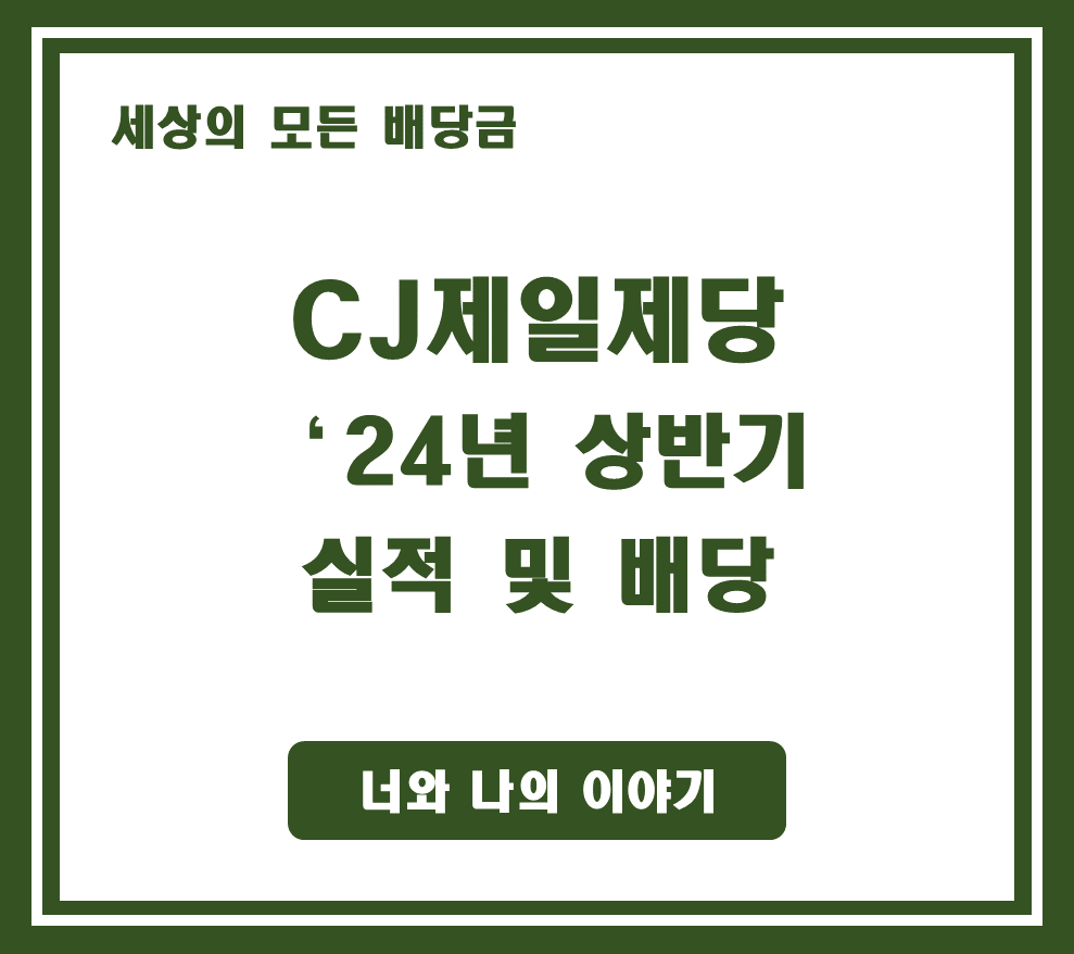 CJ제일제당, 2024년 2분기 실적 및 배당 공시!! (분기배당, 반기배당,중간배당, 주가, 배당일, 지급