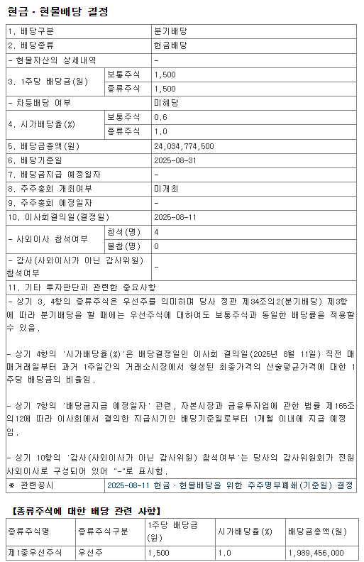 | 배당 기준일 | 2025-08-31 |
