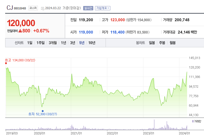 배당 조건(기준일) : 2024-04-05까지 CJ주식 보유