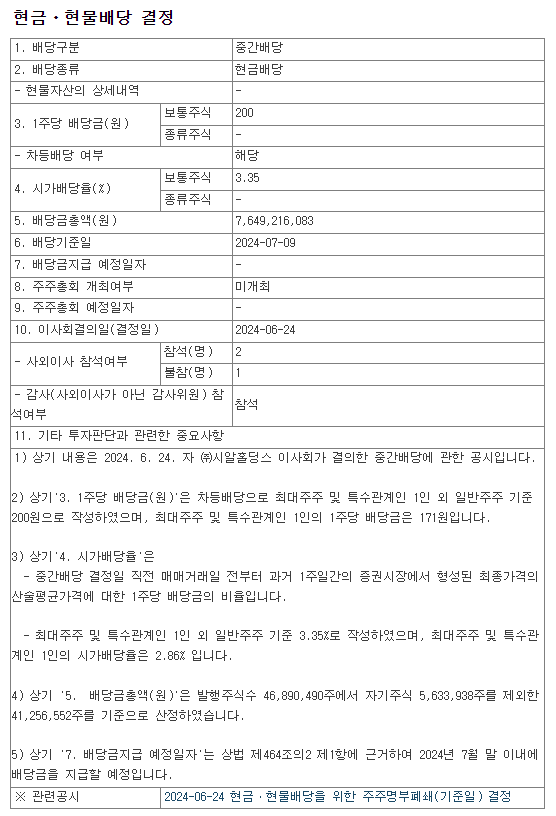 2. CR홀딩스 2024년 반기(중간) 배당금