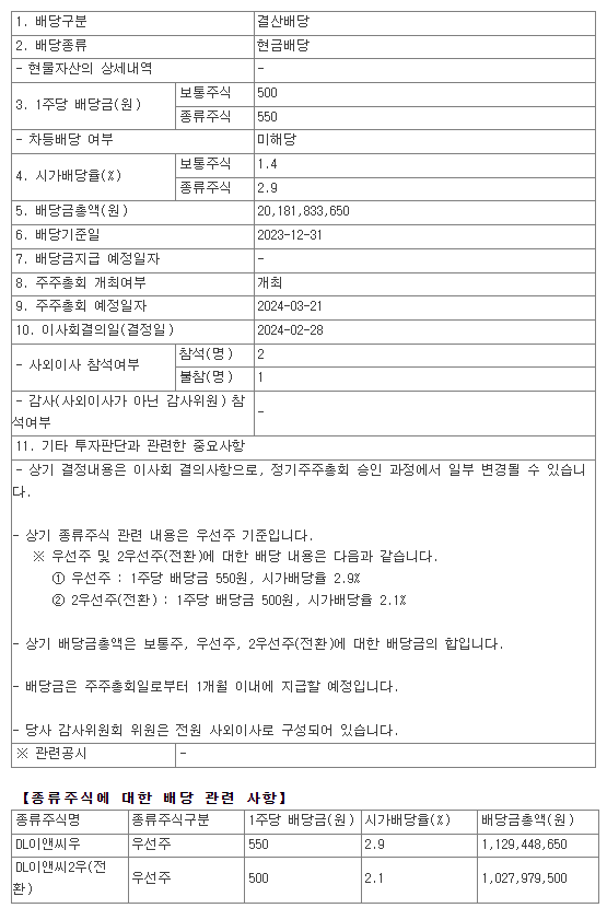 2. 2023년 DL이앤씨 배당금