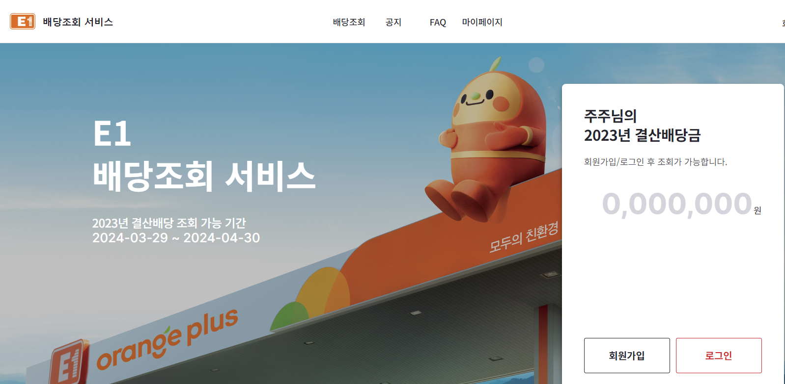 E1 배당금은 아래 공식 홈페이지에서 조회가 가능합니다. (사진 또는 링크 클릭)
