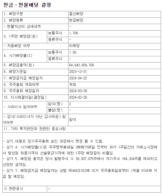 배당금 : 1,700원 (보통주)