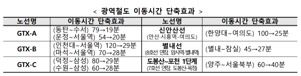 GTX로 인한 이동시간 단축효과 (출처 : 국토교통부)