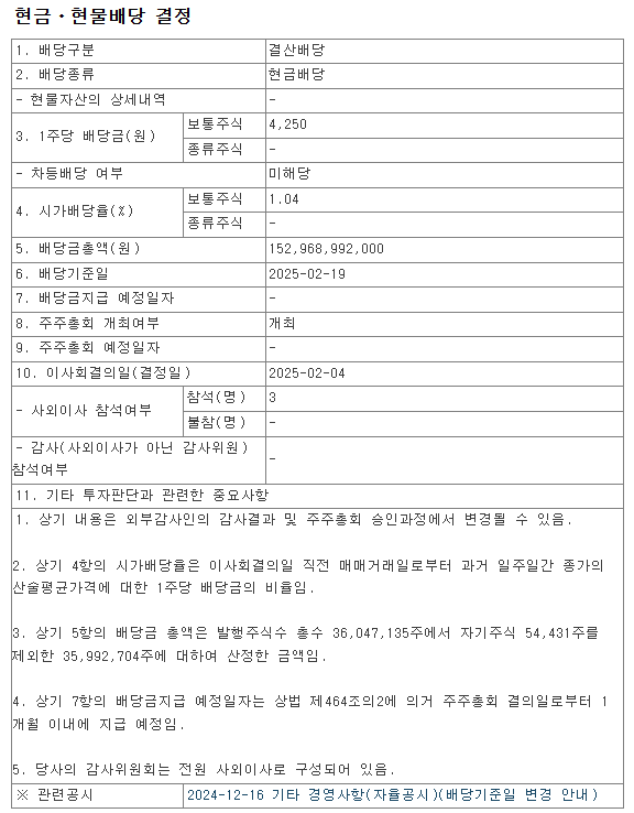 배당금 : 4,250원 (보통주)