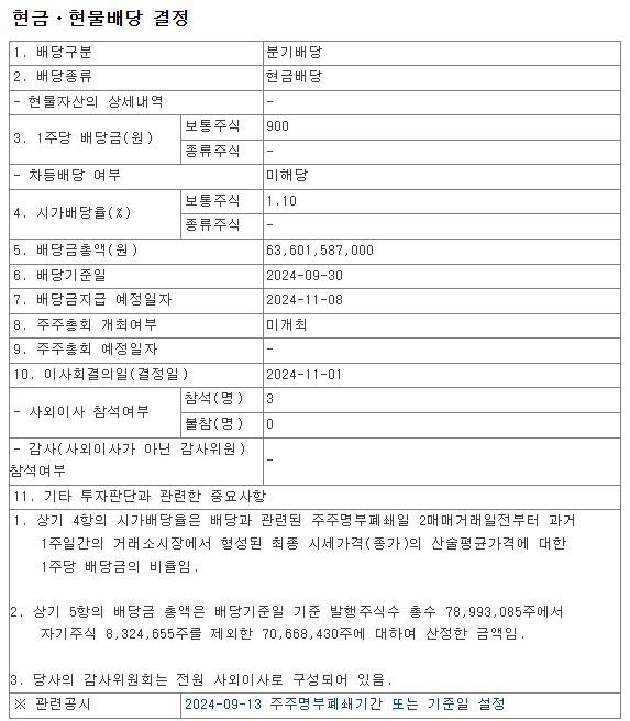 KT, 2024년 3분기 배당금 공시!! (분기배당, 반기배당, 중간배당, 주가, 배당일, 지급일, 배당락)