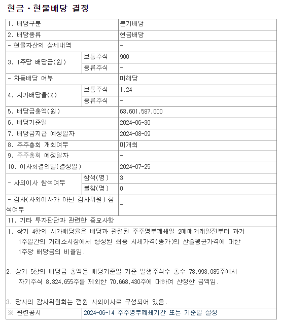 배당일 : 2024-08-09
