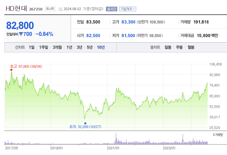 HD현대 주가 (출처 : 네이버 증권)