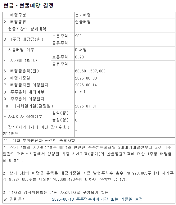 2.  2025년 2분기 HD현대 배당금 (분기배당)