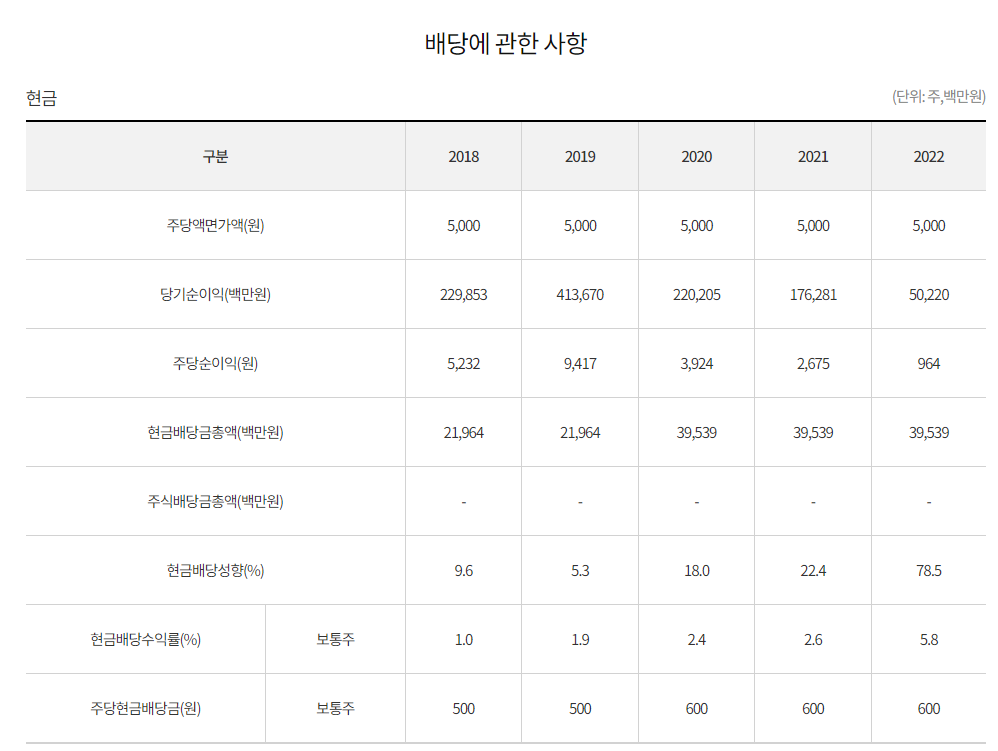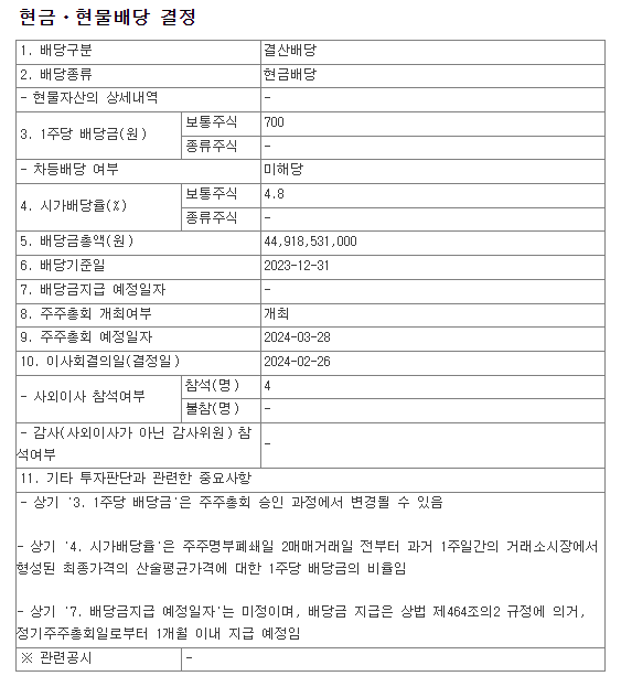 배당금 : 700원 (보통주)