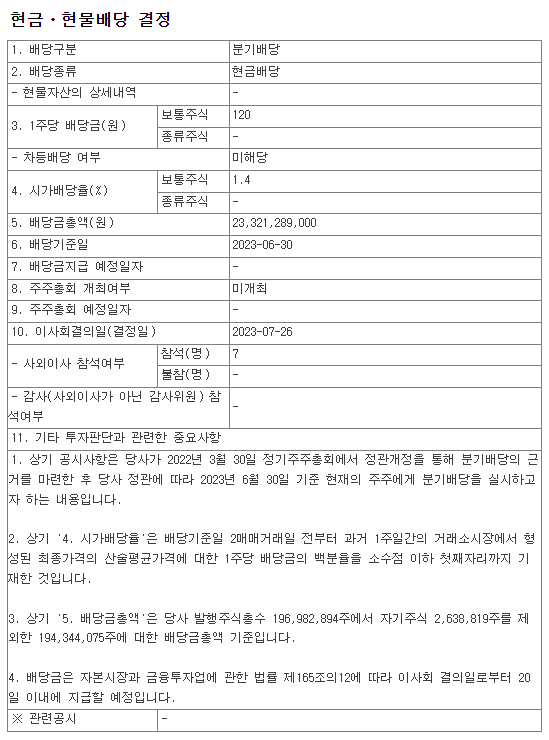 배당금 : 주당 120원 (주가 대비 1.4%)