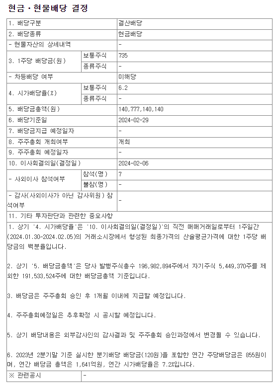 배당금 : 735원 (보통주)