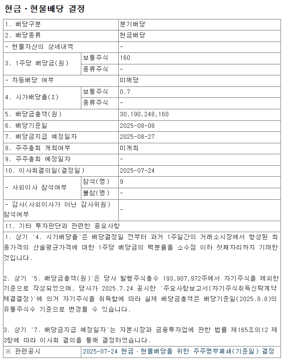 → 배당 기준일인 8월 8일 전날까지 (즉 8월 7일 포함) 주식을 보유하고 있어야 배당을 받을 수 있습니다.